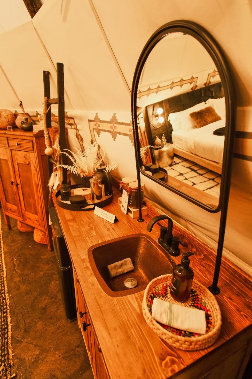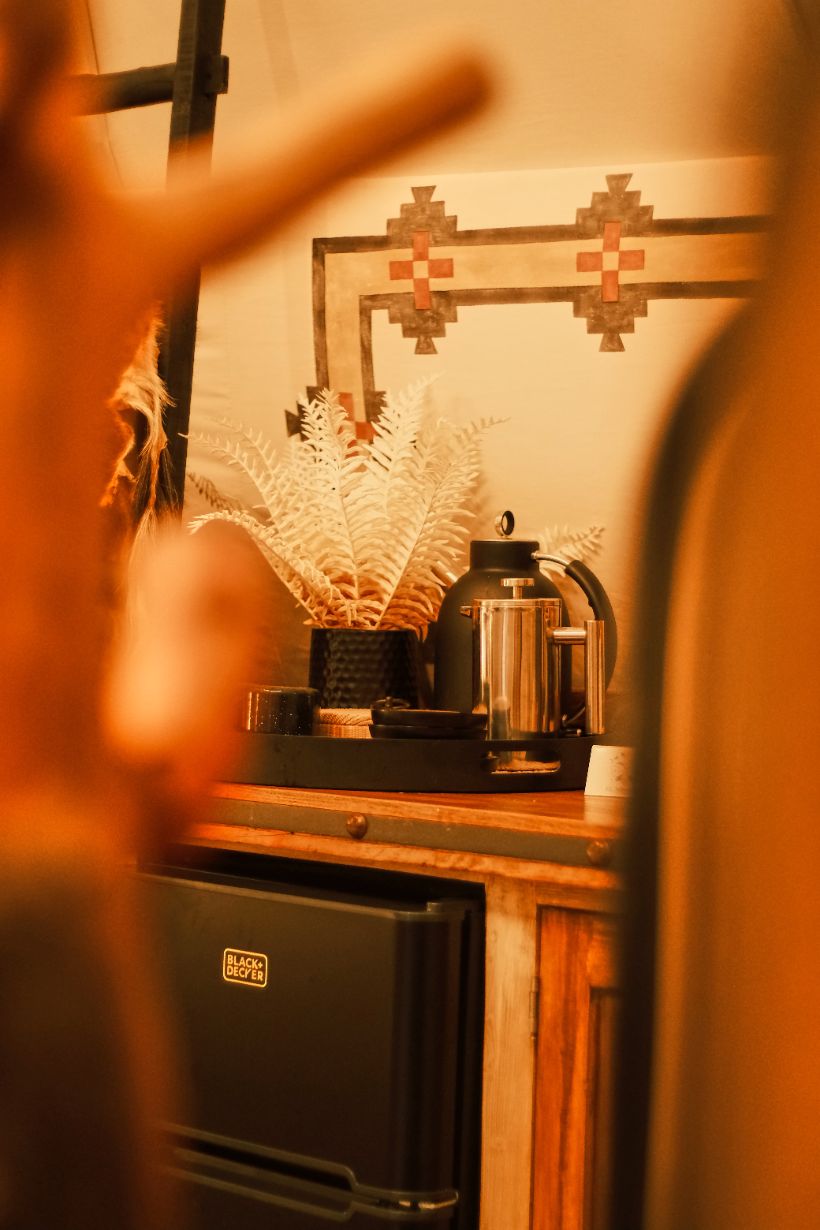 Gather in the Tipi Village common area, where you’ll find three blackstove grills and a sink, perfect for outdoor cooking and dining. Whether you’re stargazing under the vast New Mexico sky or enjoying a cozy evening by the fire pit, La Tribu promises an unforgettable glamping experience.